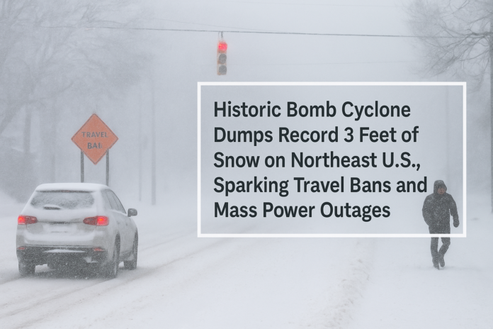 Feb. 24, 2026 — New York A rapidly intensifying bomb cyclone known as Winter Storm Hernando dumped 2 to more than 3 feet of snow across the Northeast U.S., from New York City to New England, on February 22-23, unleashing hurricane-force winds up to 98 mph, thundersnow, and blizzard warnings for 30 million people.