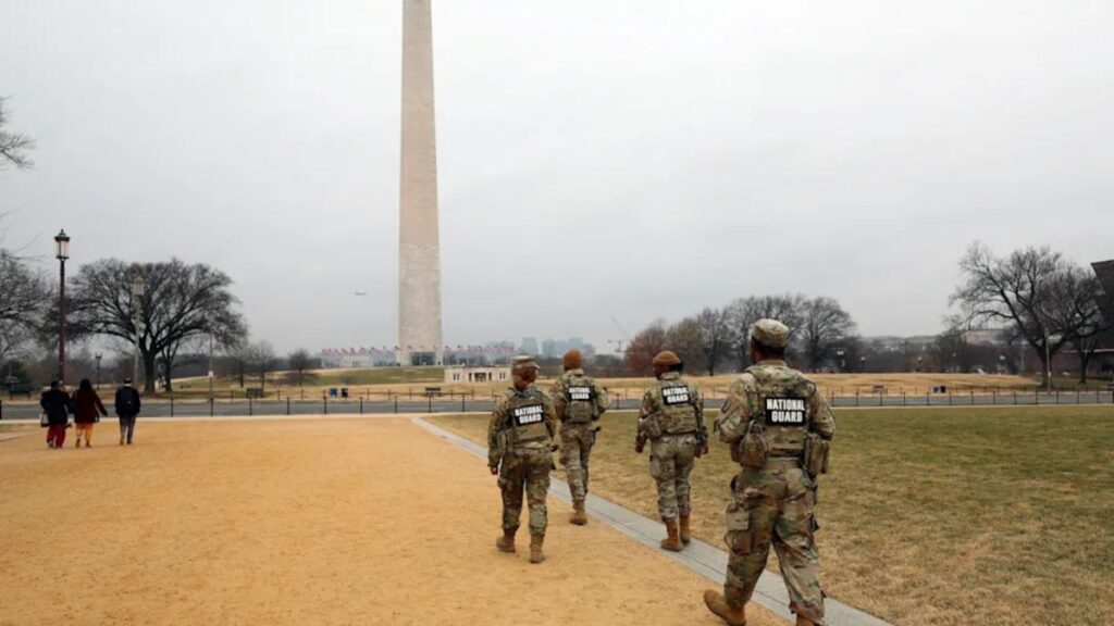 The extension ensures the troops, visible on streets including the East Front of the U.S. Capitol, will remain through 2026.
