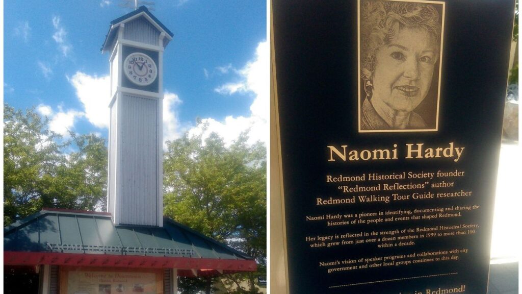 Hardy’s tribute endures, with the clock tower referenced in the Redmond Historical Society’s Women’s History Month 2024 post and the City of Redmond’s March 2024 newsletter, which noted her donation of key historical materials.