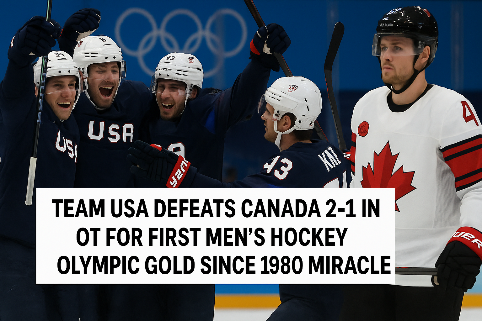 Feb. 22, 2026 — Milan, Italy The United States men’s ice hockey team defeated Canada 2-1 in overtime Sunday at the Milano Santagiulia Ice Hockey Arena to claim gold in the Milan Cortina 2026 Winter Olympics final, securing their first title in the event since the Miracle on Ice in 1980 on the 46th anniversary of that victory.