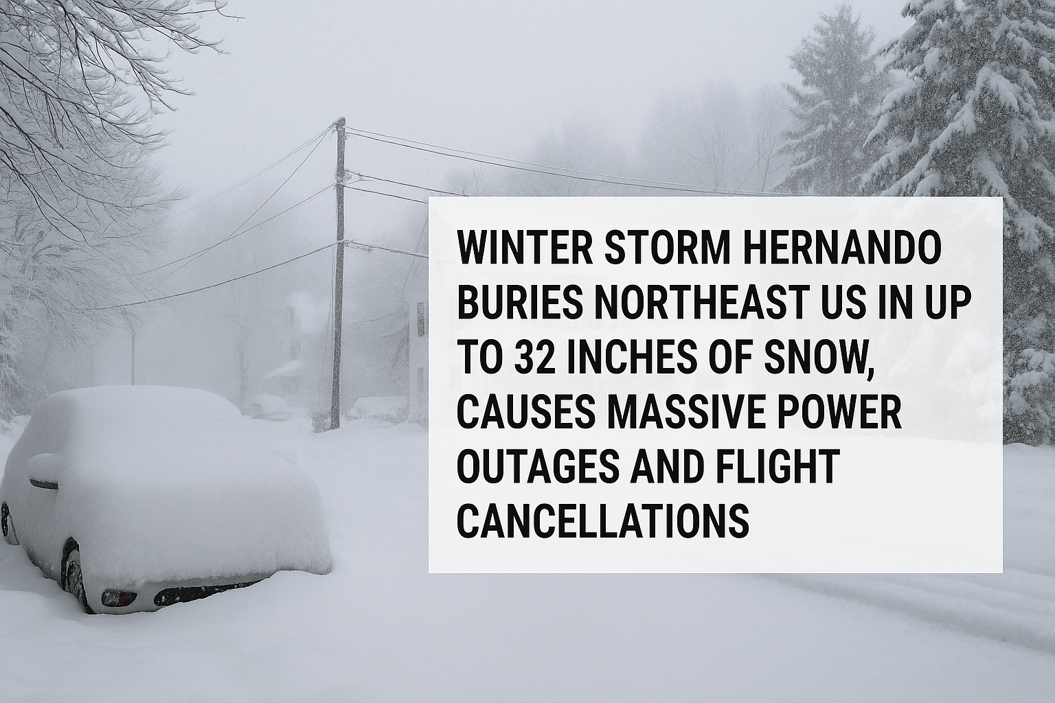 Feb. 23, 2026 — Northeast U.S. A powerful nor’easter dubbed Winter Storm Hernando struck New York City, New Jersey and southern New England on February 22-23, dumping up to 32.8 inches of snow in some areas, triggering blizzard warnings, over 600,000 power outages and more than 10,000 flight cancellations amid winds gusting to 79 mph.